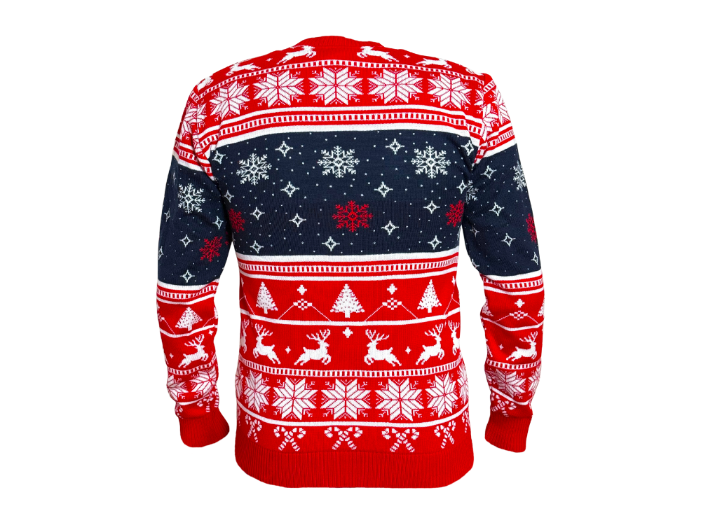 Sueter Navideño Chivas Rojo con Azul. Hecho en México. 100% Acrilán.